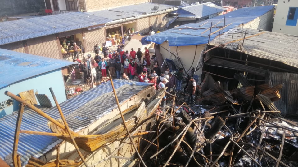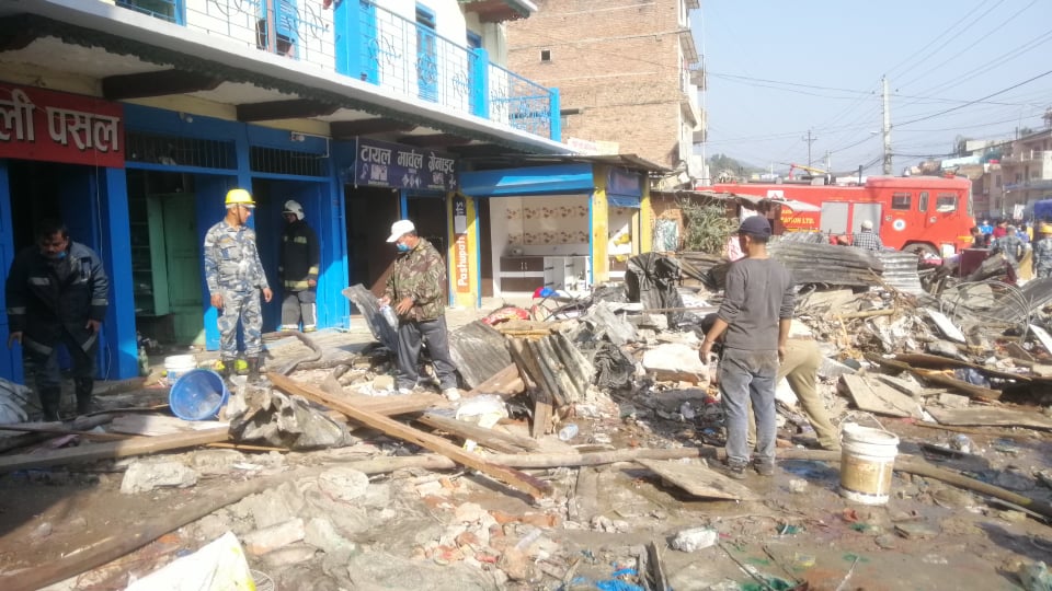 दमौली बजारको आगलागी करिब ४ घण्टापछि नियन्त्रणमा (तस्बिर सहित)