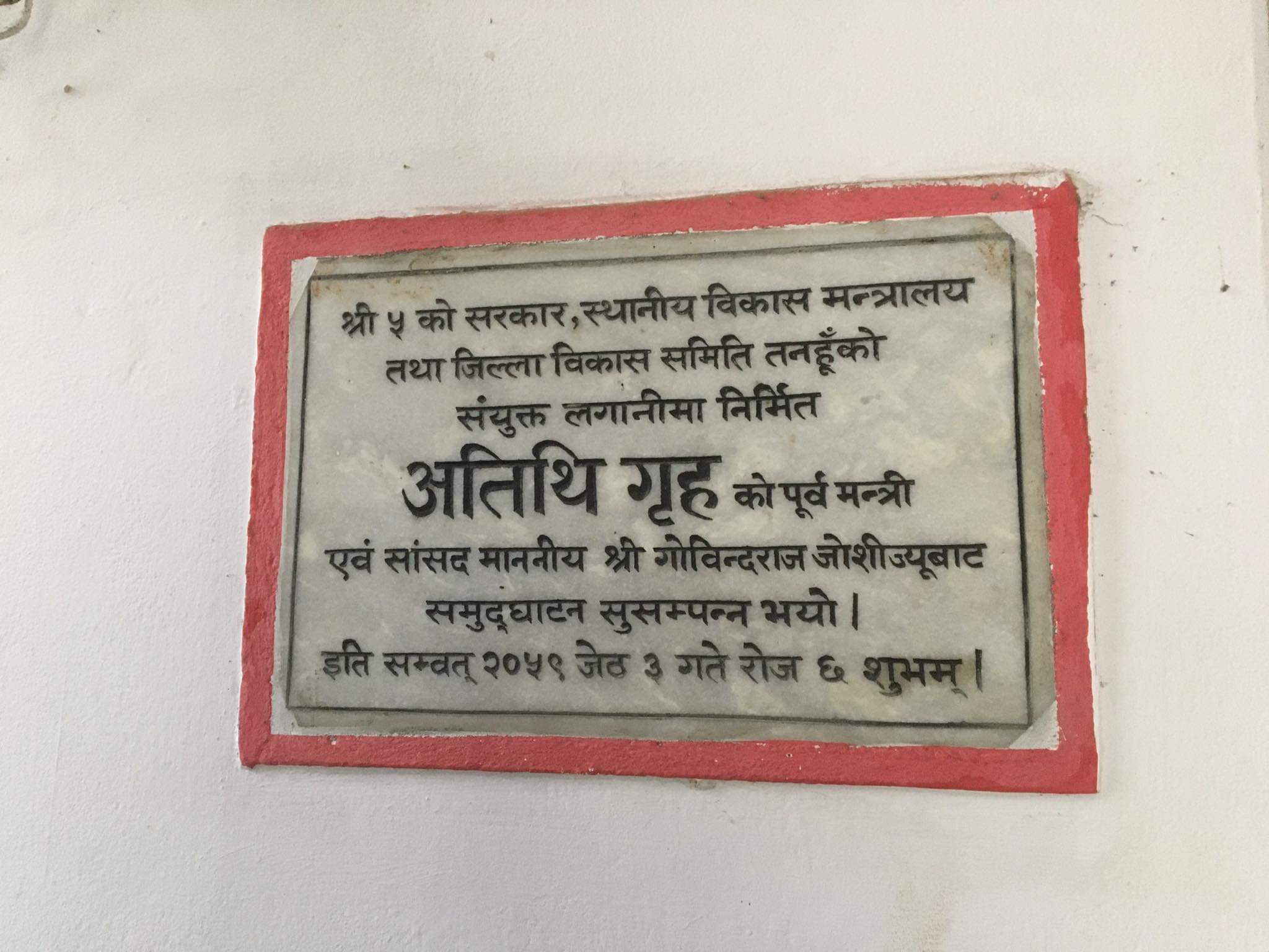 तनहुँमा नेता आउँदा बस्ने ठाउँ थिएन । त्यस समय अहिलेको जस्तो होट्ल थिएन सबै मेरो घरमा नेता राख्दा तोडफोड हुनेथियो सधै मेरो घरमा राख्न सम्भब पनि भएन त्यसैले एउटा अतिथी गृह बनाउनु पर्छ भन्ने लग्यो र आइले बिस्घरे जानेबाटो नीर रहेको अतिथि गृहम थानीय बिकास मन्त्री हुदा मैले नै बनाइदिएको हो । हामी गफ गर्दा गर्दै मैले सरलाई धेरै समय देखि मनमा रहेको प्रश्नको बरेमा सोधे ” सर दरबार हत्याकान्ड बारे मेरो जिज्ञासा् छ । के दिपेन्द्रले नै आफ्नो बंश बिनास गरेका हुन ? वहाँले भन्नू भयो त्यस समय म काठमाडौको जाउलाखेलमा बस्थे । दरबार मार्गमा मेरो साथिहरु होटलमा खाना बस्नु भएको रहेछ दरबारमा गोलिको आवाज सुनेपछी मलाइ टेलिफोन गर्नुभयो जोशी जि यहाँ त गोलिको अवाज आएको छ केही खबर सुन्नु भयो ? म हत्तपत्त घरको छतमा गएर हेरे हेलिकप्टर उडेर गएको देखे । बास्तबमा यो घटना बुझ्न् पुरानो घटनाहरु बुझ्नुपर्छ ।