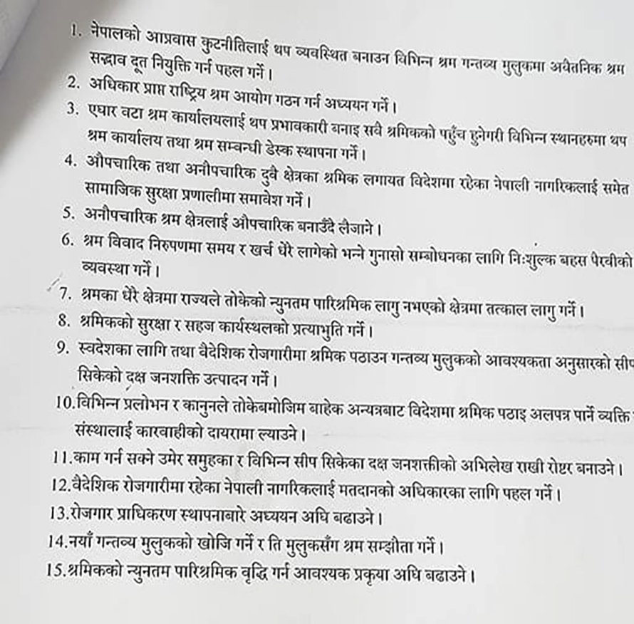 पत्रकार सम्मेलनमार्फत मन्त्री श्रेष्ठले आफूले अहिलेसम्म गरेका काम र गर्ने योजनाहरु पनि सार्वजनिक गरेका छन् । उनले आगामी जुनभित्र कतारसँग नयाँ श्रम समझदारीको हस्ताक्षर गर्ने सहमति भएको बताए ।