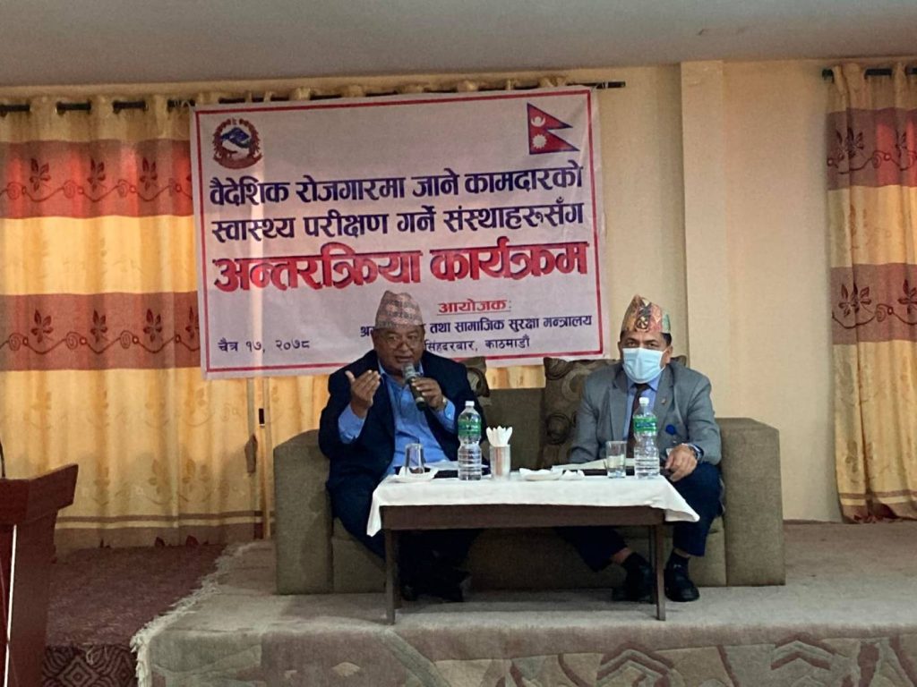 वैदेशिक रोजगारीको लागि जाने श्रमिकको स्वास्थ्य परीक्षण गर्न निर्धारण गरिएको मूल्य समयानुकूल समायोजनका लागि मन्त्रालय तयार रहेको बताए ।
