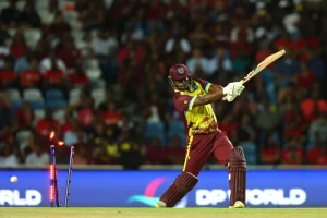खेलमा वेस्ट इन्डिजको सुरुवात भने राम्रो हुन सकेन । पहिलो ओभरमा नै जोनसन चार्ल्सलाई शून्य रनमा गुमाएको टोलीले पावरप्लेभित्र २२ रनमा ४ विकेट गुमाइसकेको थियो ।