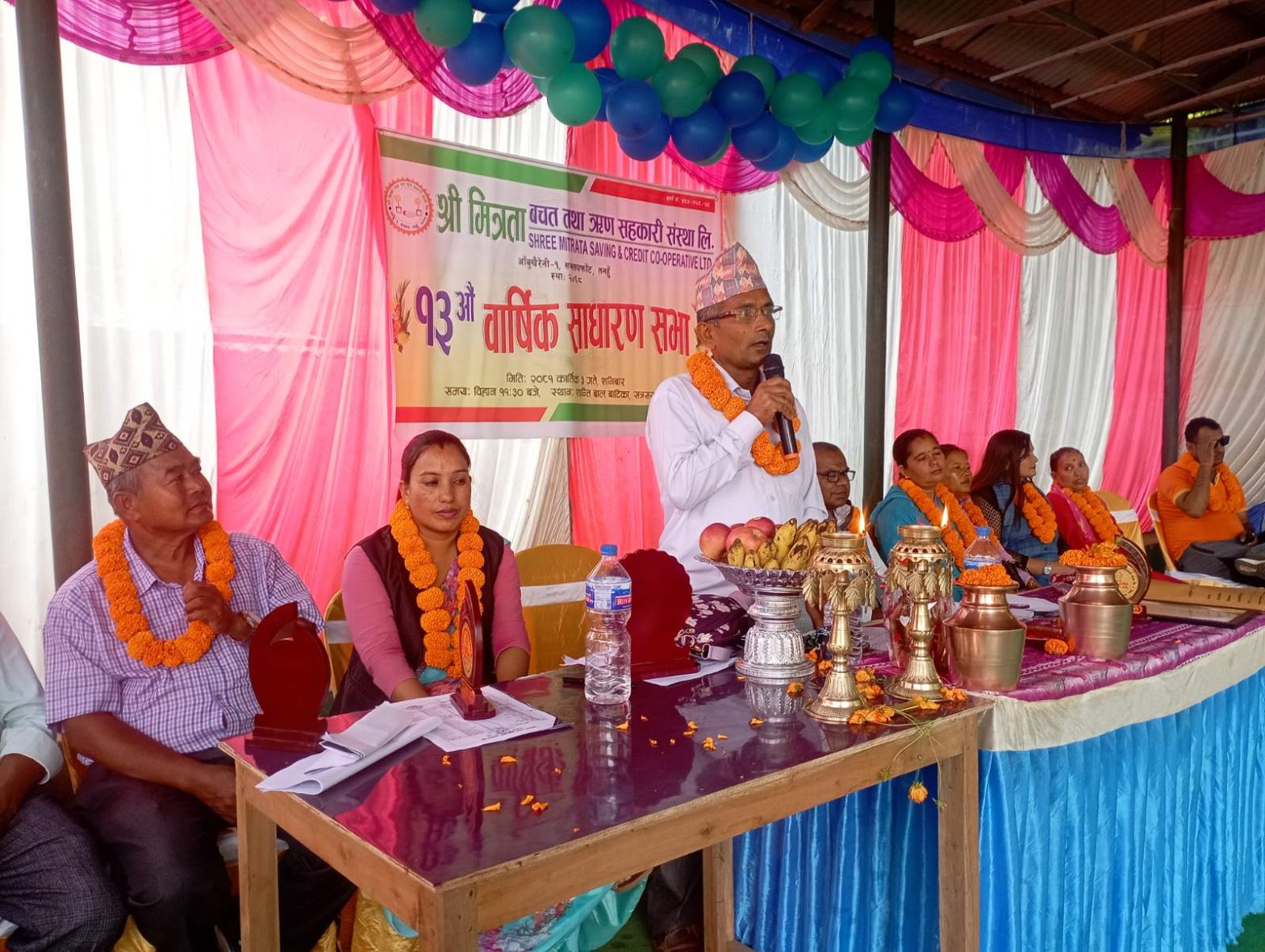 सँस्थाकी ब्यवस्थापक रचना थापाले स्वागत गर्नु भएको कार्यक्रममा कोषध्यक्ष ऋषिराम अधिकारीले आर्थिक प्रतिबेदन प्रस्तुत गर्नु भएको संस्थाका सचीब पदमराज अधिकारीले जानकारी दिए । कार्यक्रममा स्थानीय बयोवृद्ध सरस्वती पण्डितलाई सम्मान गरिएको थियो भने शेयर धनीका तर्फबाट जेष्ठ सदस्य लिलामाया लम्साल र मोतराज कँडेललाई पनि सम्मान गरिएको थियो ।