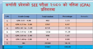 अन्य प्रदेशको तुलनामा यो नतिजा निकै कमजोर हो । त्यसमा पनि उच्च जीपीए ल्याउने कर्णालीका विद्यार्थी सङ्ख्या निकै न्यून छ ।
