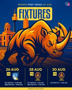 यो तयारी शृंखला अन्तर्गत नेपालले २६ देखि ३० अगस्टसम्म एसीटी र साउथ अष्ट्रेलियासँग प्रतिस्पर्धा गर्नेछ।