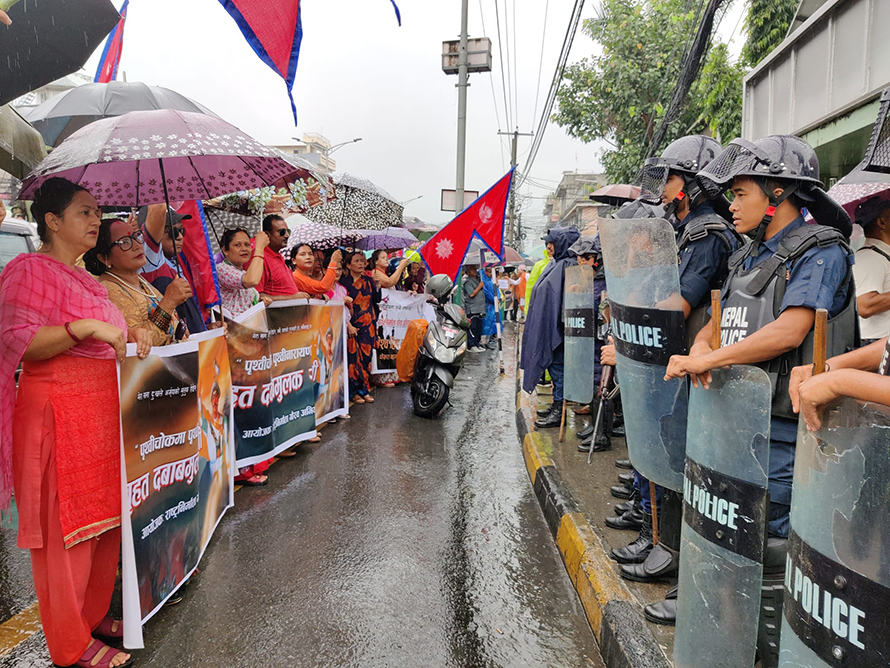पृथ्वीचोकमा पृथ्वीनारायणको सालिक राख्न माग गर्दै नाराबाजी