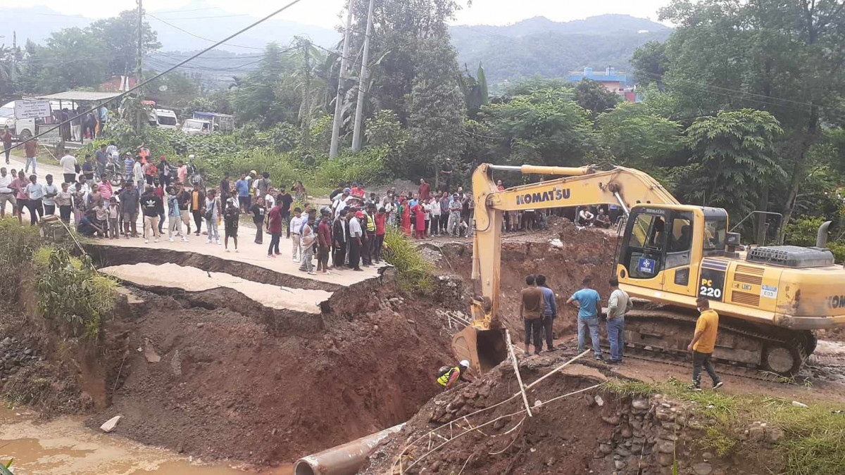 सडक भासिएर अबरुद्व पृथ्वीराजमार्ग तीन घण्टापछि एकतर्फी सुचारु