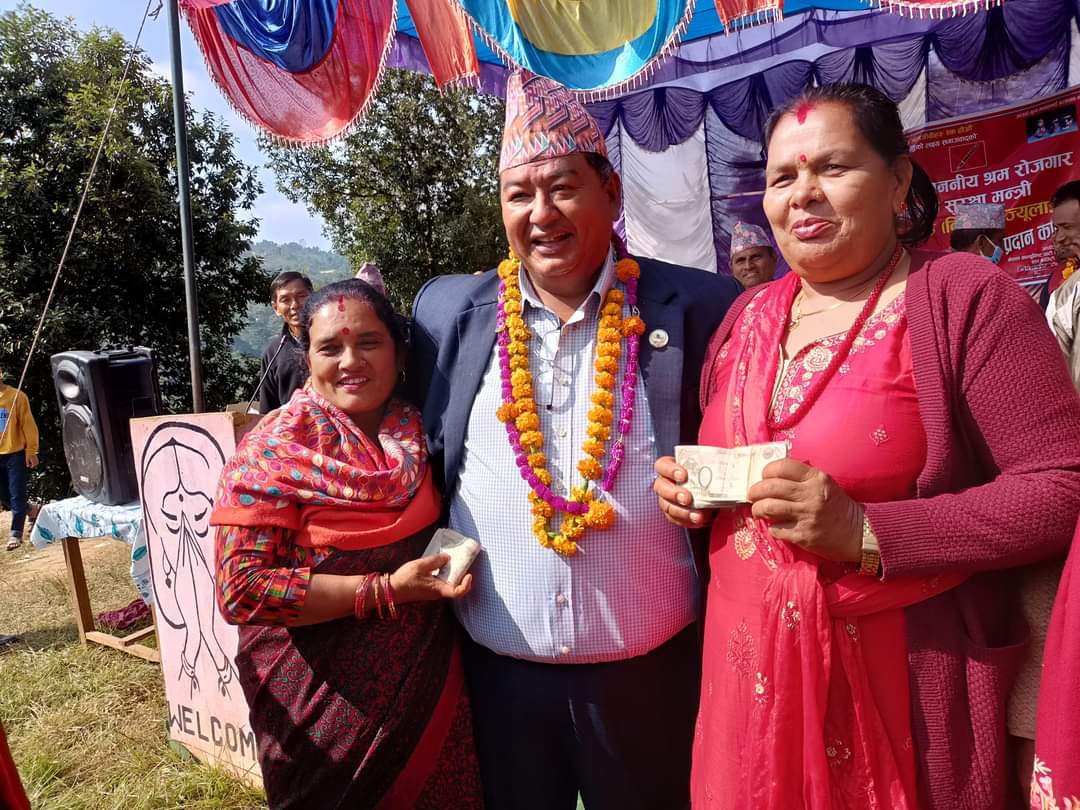 श्रममन्त्री श्रेष्ठद्वारा तनहुँका दुई आमा समुहलाई आफ्नो तलबभत्ता सहयोग