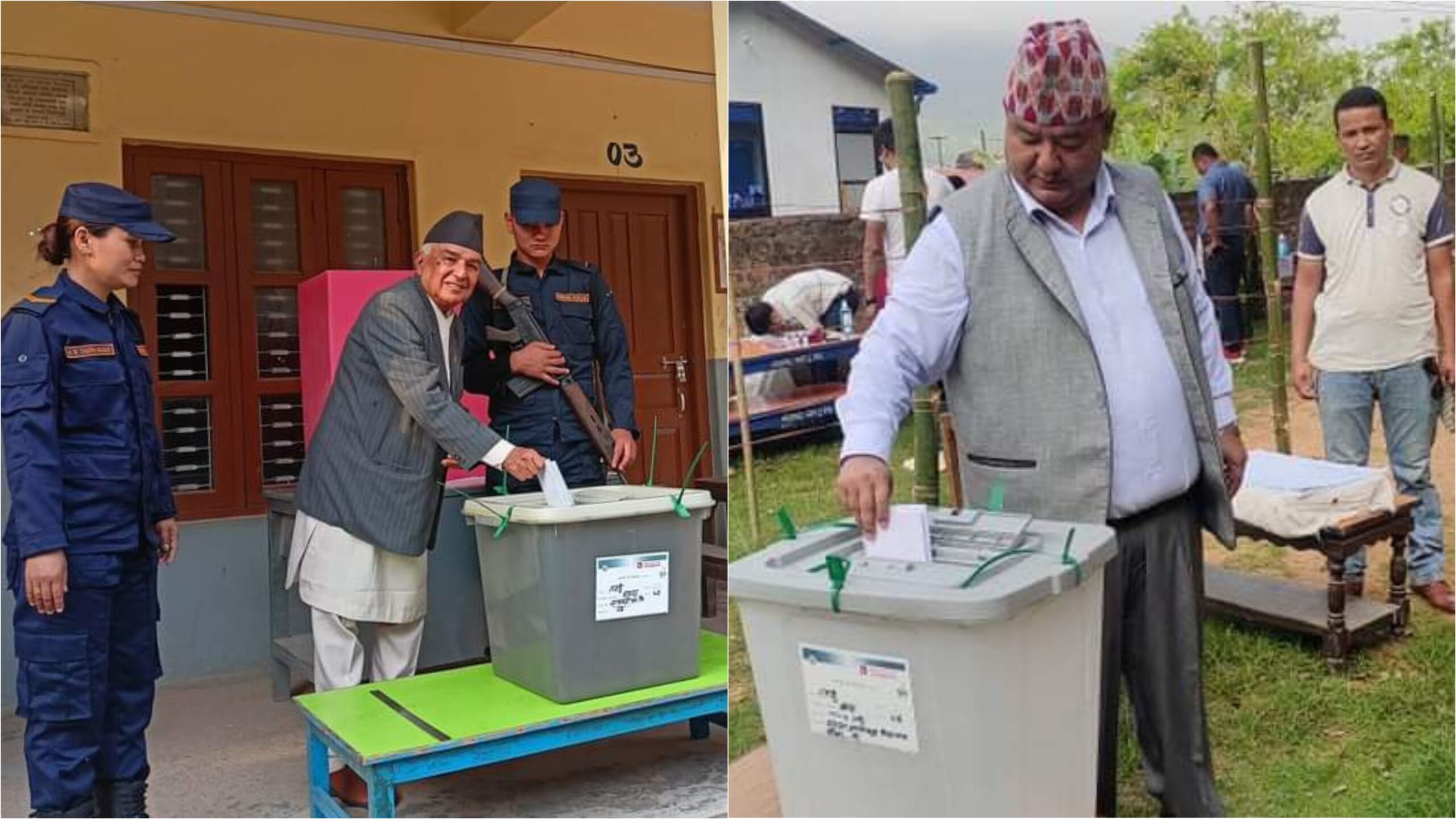 कांग्रेस नेता रामचन्द्र पौडेल र श्रममन्त्री किसान श्रेष्ठले गरे तनहुँबाट मतदान