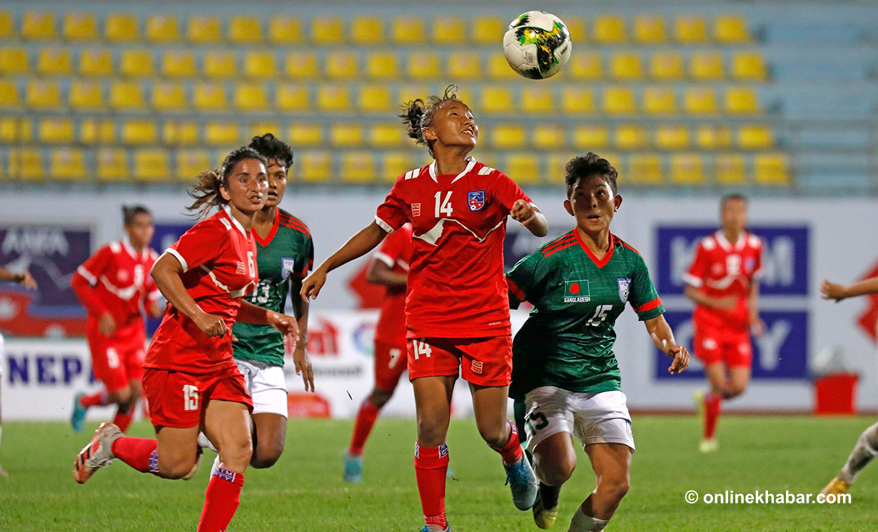 साफ वुमन्स च्याम्पियनसिप : साम्बाविनै भुटानसँग खेल्दै नेपाल